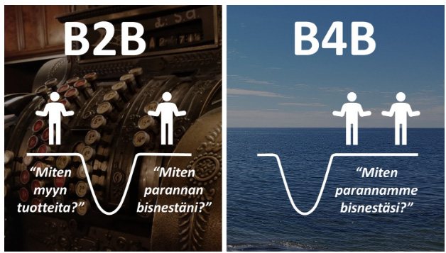 Sen sijaan, että B2B-myyjä miettisi ”miten myyn enemmän tuotteita ja palveluita”, B4B-myyjä herää joka aamu miettien ”miten voin parantaa asiakkaani bisnestä”.